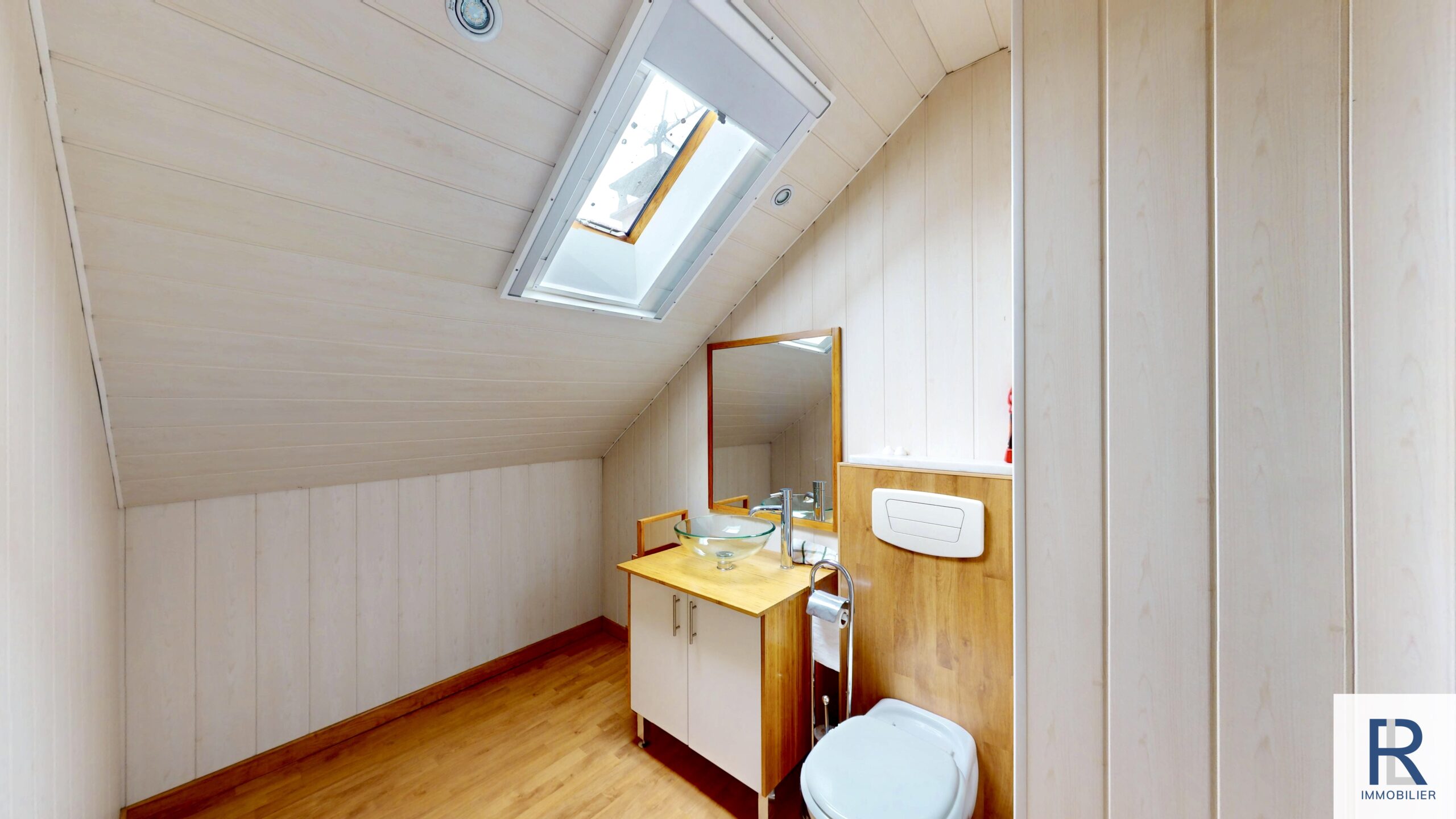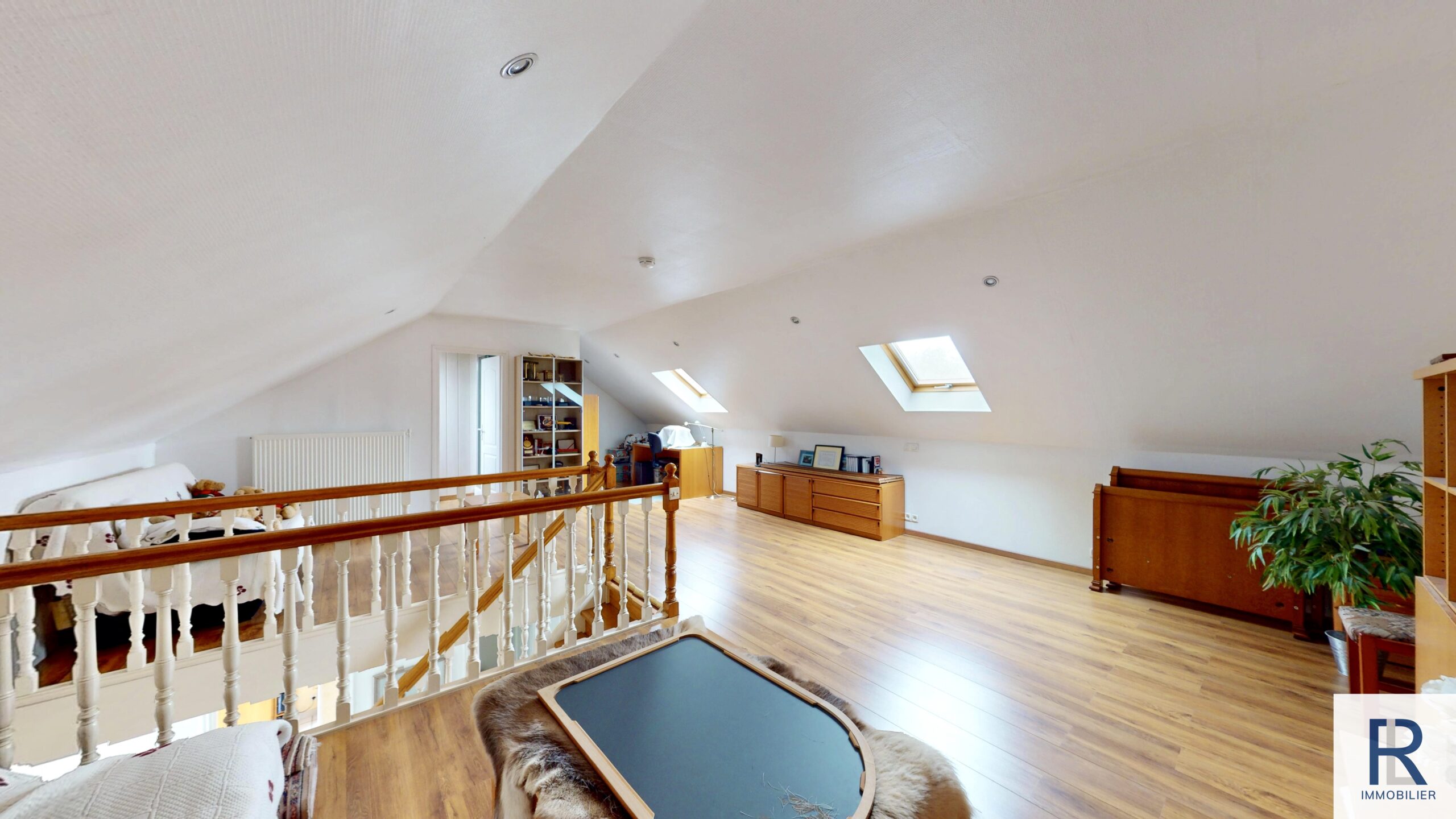 Au deuxième étage sous les combles, une grande pièce de 35 m2, une salle d’eau avec un toilette.